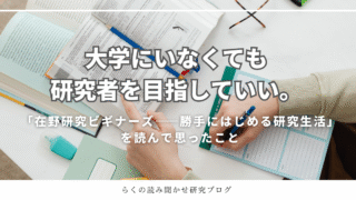 【感想】大学にいなくても研究者を目指していい。「在野研究ビギナーズ――勝手にはじめる研究生活 」を読んで思ったこと(編者・荒木優太)