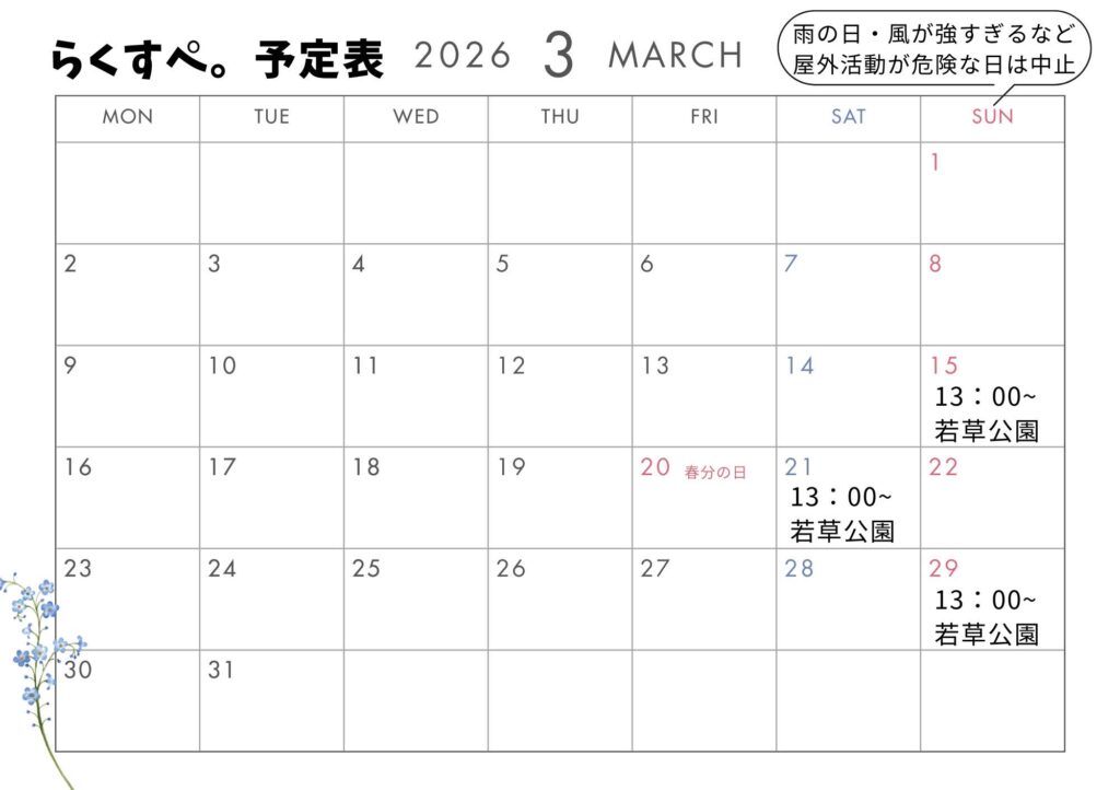 まだまだ寒い日もありますが、春らしい日が増えてきましたので、春のらくすぺ。開催します!
